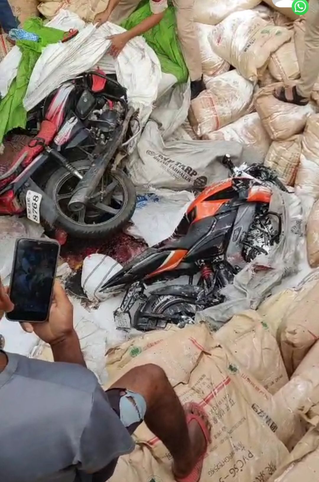 किशनपुरी क्षेत्र में वेयरहाउस के सामने रोड पर बाइक सवारों पर पलटा ट्रक, दो की मौत