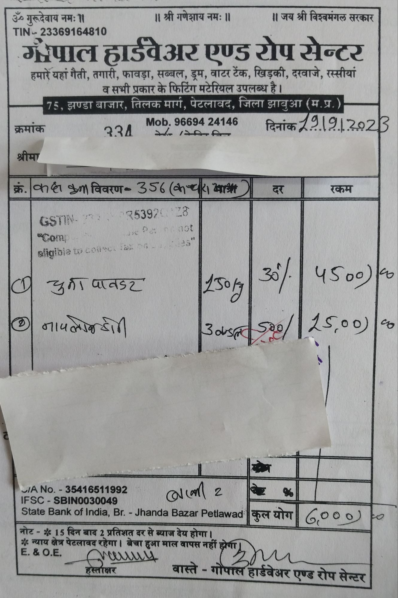 पेटलावद की फर्म गोपाल हार्डवेयर द्वारा रू 10 का माल 30 रू में,90 का माल रू 120 में व 200 रू का 350 में सप्लाई कर , शासन को चूना लगाया है ।