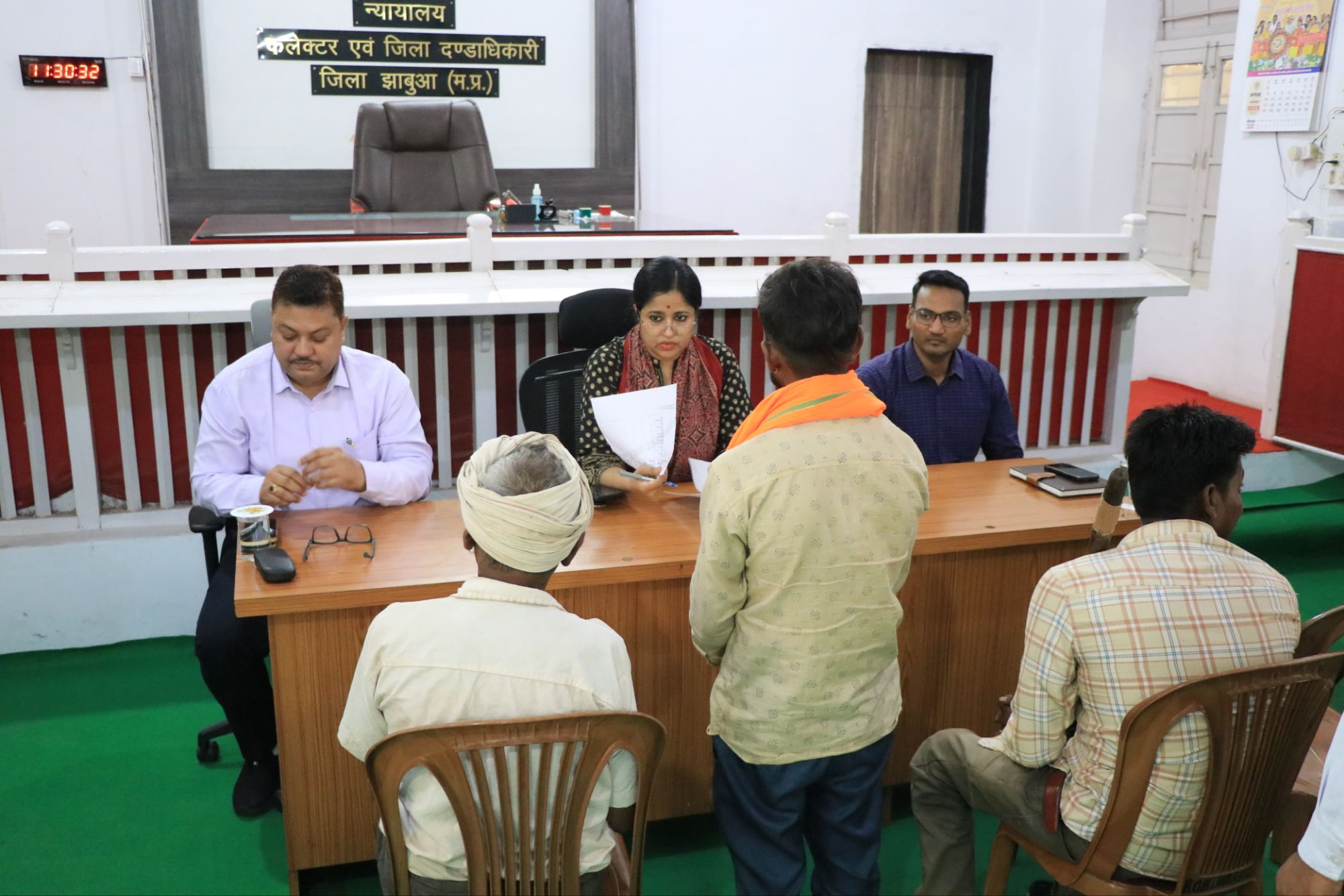 *आवेदनों के निराकरण के निर्देश दिए:-* आवेदक श्री नुरा पिता हुरतान बबेरिया द्वारा बताया गया कि वन भूमि का पट्टा दिलाये जाने एवं सर्वे करने के संबंध में आवेदन प्रस्तुत किया गया। आवेदक टेबली पति जेमाल भाबोर निवासी ग्राम नल्दी बड़ी द्वारा बताया गया कि ग्राम नल्दी बड़ी के पुंजारा फलिया में नवीन डीपी लगवाने के संबंध में आवेदन प्रस्तुत किया गया। आवेदक श्री खुमचंद पिता मल्ला वसुनिया निवासी उमरादरा तहसील मेघनगर द्वारा बताया गया कि सर्वे नं 423, 424 एवं 425 भूमि को शासकीय रिकार्ड में कालका माता मंदिर के नाम से नवीन डिजिटल रिकार्ड में दर्ज करने एवं सर्वे नंबर 423 की भूमि पर अनावेदक द्वारा किया जा रहा मकान निर्माण कार्य रोकने का आदेश करने के संबंध में आवेदन प्रस्तुत किया गया। आवेदक समस्त ग्रामवासी ग्राम पंचायत कुंडला द्वारा बताया गया कि ग्राम कुंडला में रेल्वे का काम चल रहा है क्षेत्र में निवास कर रहे लोगों को गांव से बाहर आने जाने में समस्या हो रही है, रेल्वे ब्रिज बनाने के संबंध में आवेदन प्रस्तुत किया गया। आवेदक श्री दिनेश पिता मानसिंग मईडा निवासी ग्राम वालाखोरी तहसील थान्दला द्वारा बताया गया कि विपक्षियों द्वारा प्रार्थी की पैतृक भूमि पर अतिक्रमण करने व ऋण लेकर प्रार्थी एवं प्रार्थी के भाईयों पर बैंक ऋण जमा करने का दबाव बनाने व विपक्षियों से भूमि कब्जा हटाने के संबंध में आवेदन प्रस्तुत किया गया। कलेक्टर द्वारा सम्बंधित अधिकारियों को समस्याओं को समय सीमा में निराकरण करने के निर्देश दिए। इस प्रकार विभिन्न विभागों से संबंधित जनसुनवाई में कुल 48 आवेदन आए। इस दौरान मुख्य कार्यपालन अधिकारी जिला पंचायत श्री जितेन्द्र सिंह चौहान, सहायक कलेक्टर श्री आशीष कुमार, समस्त विभाग के जिला अधिकारी एवं तहसीलदार एवं नायब तहसीलदार उपस्थित रहे।