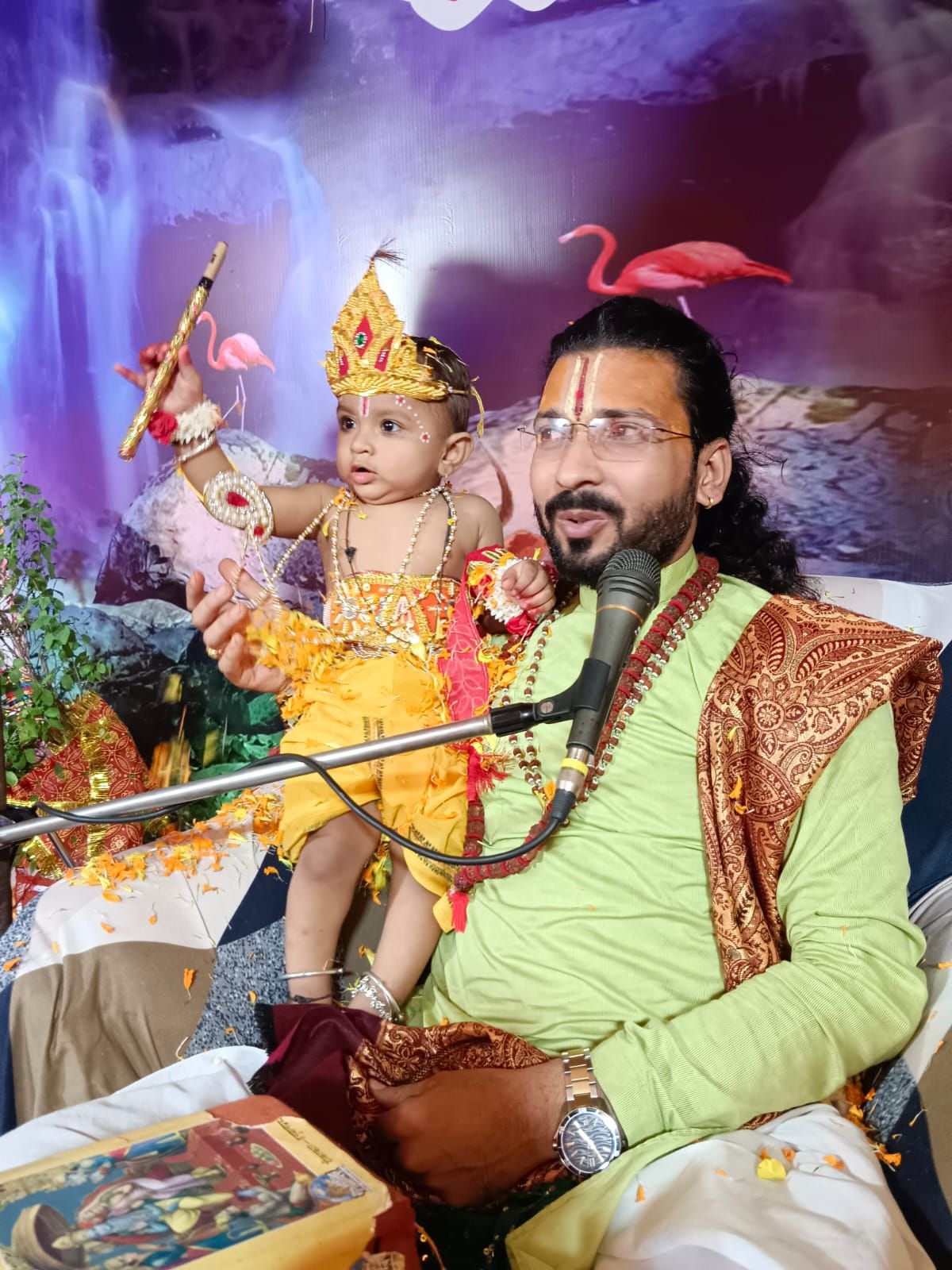 भागवत कथा में मनाया कृष्ण जन्मोत्सव, झुमे श्रोता