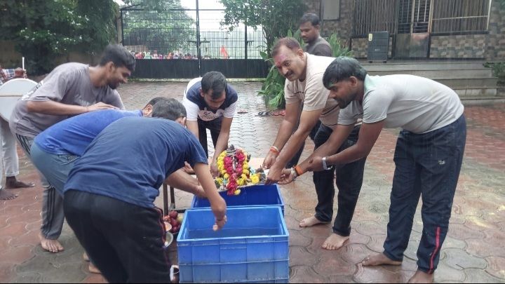इको फ्रेंडली गणेश जी का विसर्जन प्राकृतिक रूप से किया व प्रसाद पौधों में वितरित किया