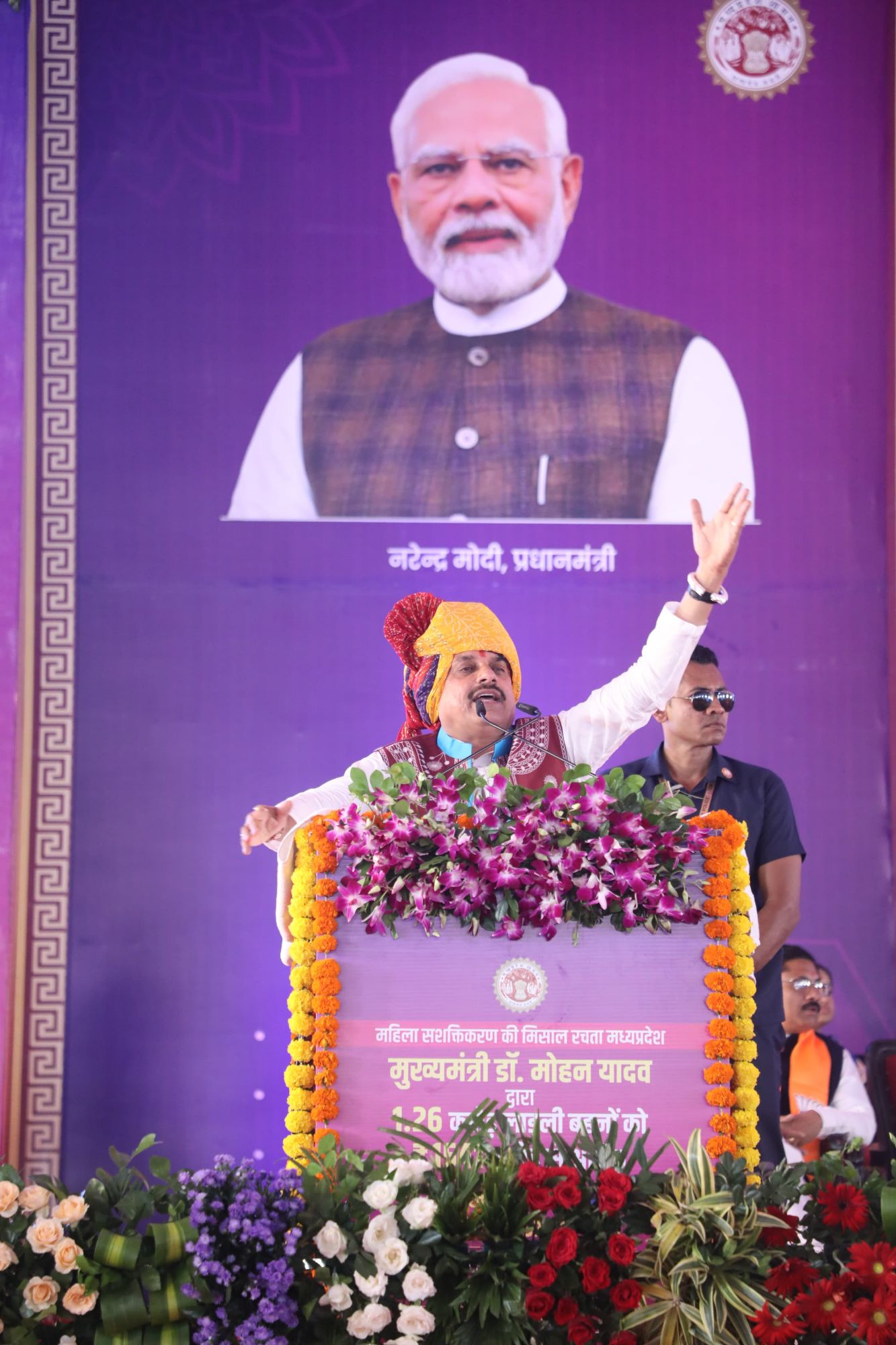 झाबुआ – । मुख्यमंत्री डॉ मोहन यादव ने कहा कि पेटलावद झाबुआ जिले के सबसे चमकदार स्थल पर माही नदी और मधुकन्या नदी के संगम पर स्थित शृंगेश्वर महादेव के आशीर्वाद से आज प्रदेश भर की लाडली बहना के खाते में रक्षाबंधन की तरह राशि का पहुँच रही है। झाबुआ पहुँच कर ऐसा लगा की मध्यप्रदेश की आत्मा से मिलन हो गया। अँचल का प्राकृतिक सौन्दर्य देखते ही बनता है। मेहनतकश किसान, मन के साफ इंसान और नवदुर्गा की दैवियों के रूप में विराजित लाडली बहनों को देख मन आनंदित हो उठा। प्रदेश की सरकार ने लाडली बहना की राशि 1000 से बढ़ाकर 1250 की गयी। विगत माह बहनों को 1500 की राशि देकर रक्षाबंधन का पर्व धूम-धाम से मनाया गया था। आज का दिन भी रक्षाबंधन की अनुभूति करा रहा है और बहनों का आशीर्वाद खुले मन से प्रदेश की सरकार को प्राप्त हो रहा है। योजना के शुरुआत से लेकर आज तक लाडली बहना के खातों में 41 हजार करोड़ की राशि अंतरित की जा चुकी है दिवाली के बाद भाईदूज से लाडली बहनों को प्रतिमाह 1500 रुपये की राशि दी जाएगा। ऐसे ही 2028 तक 3000 रुपये दी जाएंगे। मुख्यमंत्री डॉ. मोहन यादव ने कहा कि प्रदेश की 1.26 करोड़ से अधिक लाडली बहनों के खाते में 28वीं किश्त के 1541 करोड़ से अधिक राशि का सिंगल क्लिक के माध्यम से अंतरण किया जा रहा है । जिसमें झाबुआ जिले की 192453 लाडली बहना के खाते में 23.60 करोड़ से अधिक की राशि का अंतरण किया जा रहा है। सामाजिक सुरक्षा पेंशन योजनान्तर्गत प्रदेश के 53.48 लाख से अधिक पेंशन हितग्राहियों को 320.89 करोड़ से अधिक राशि का सिंगल क्लिक से अंतरण किया गया। जिसमें जिले के 61573 हितग्राहियों को 3.69 करोड़ से अधिक राशि का अंतरण किया जा रहा है। साथ ही प्रधानमंत्री उज्ज्वला योजना के एलपीजी कनेक्शनधारी उपभोक्ता एवं गैर प्रधानमंत्री उज्ज्वला योजना श्रेणी में मुख्यमंत्री लाडली बहना योजना के अंतर्गत पंजीकृत लाडली बहनों एवं विशेष पिछड़ी जनजाति की आर्थिक योजनान्तर्गत पंजीकृत महिलाओं को राशि रुपए 450 में गैस रिफिल की राशि का अंतरण भी किया गया। जिसमें प्रदेश की 31 लाख से अधिक बहनों को 48 करोड़ से अधिक की अनुदान राशि का सिंगल क्लिक से अंतरण किया जा रहा है। जिले के 32547 लाभार्थी को 42.78 लाख से अधिक की राशि का अंतरण किया जा रहा है।