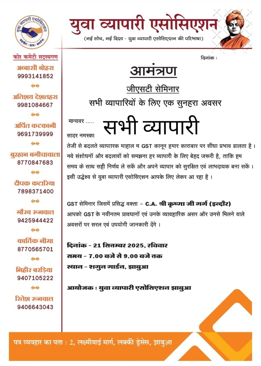 युवा व्यापारी एसोसिएशन झाबुआ द्वारा जीएसटी सेमिनार का आयोजन