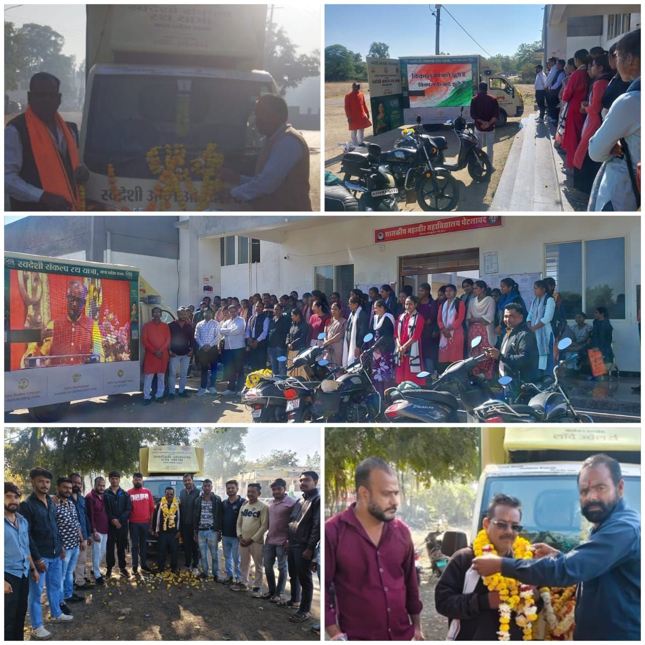इसके पश्चात, यात्रा स्थानीय शासकीय महावीर महाविद्यालय पहुंची। यहां एक क्लिपिंग भी दिखाई गई। उद्बोधन में सभी से आत्मनिर्भर भारत की दिशा में स्वदेशी को अपनाने और ‘वोकल फ़ॉर लोकल’ को बढ़ावा देने के लिए सामूहिक संकल्प लेने का आह्वान किया।