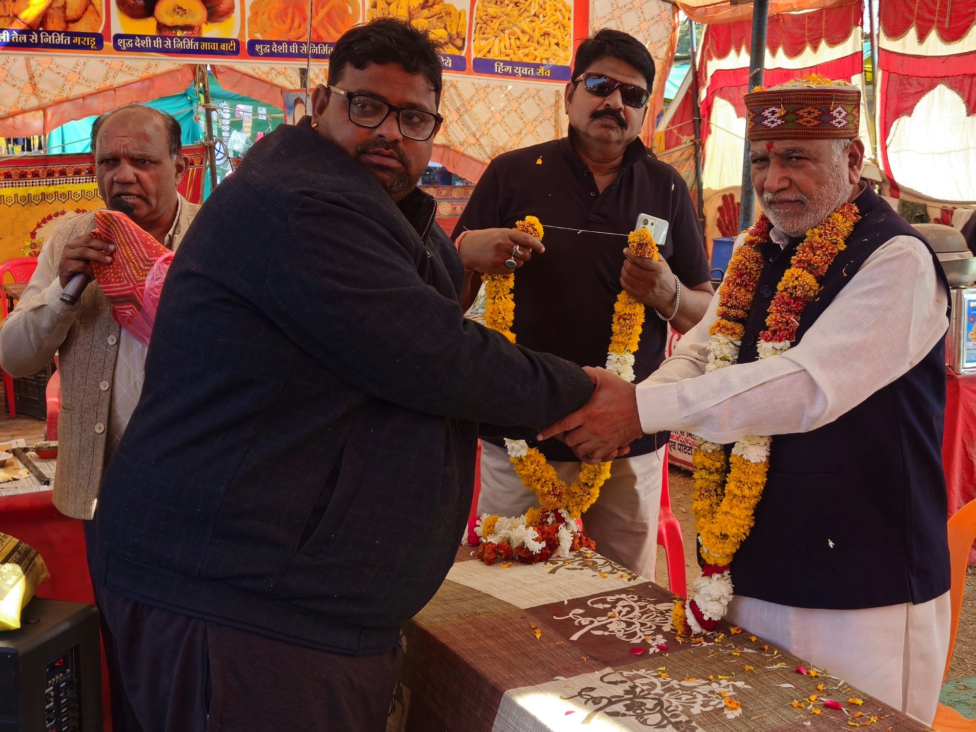 मेला आयोजक समिति ने दोनों ही राजनैतिक दलों का साफा बंधवाकर किया सम्मान