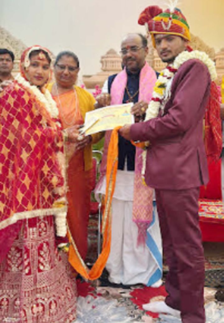 नव-दंपतियों को आर्शीवाद प्रदान कर सुखद एवं मंगलमय जीवन की शुभकामनाएं दी