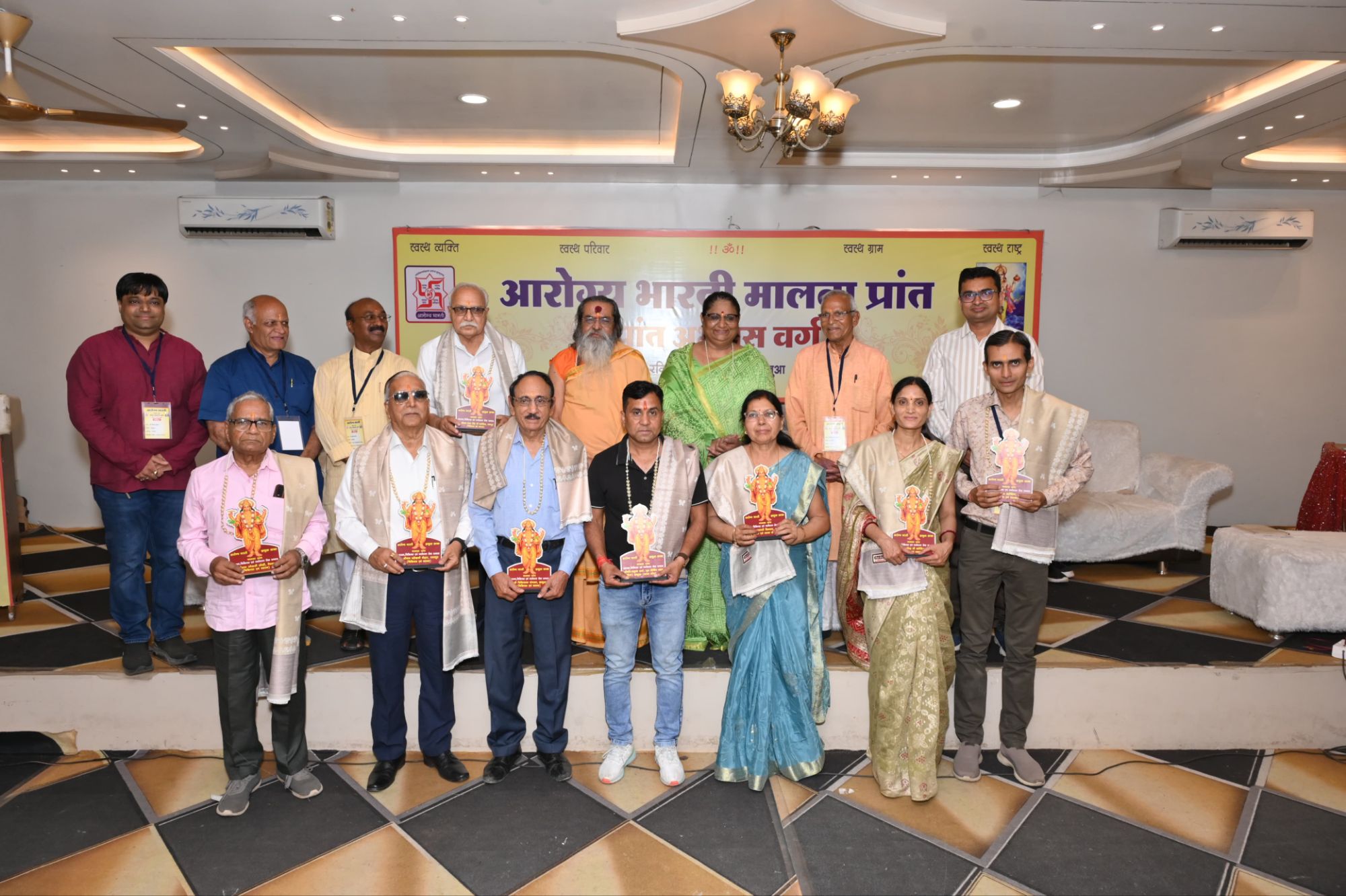 झाबुआ। आरोग्य भारती मालवा प्रांत द्वारा रविवार को झाबुआ में एक दिवसीय अभ्यास वर्ग का आयोजन किया गया। कार्यक्रम का प्रथम सत्र प्रातः 10 बजे से 12 बजे तक आयोजित हुआ, जिसमें स्वास्थ्य, चिकित्सा एवं पर्यावरण से जुड़े विभिन्न विषयों पर विस्तृत चर्चा की गई और स्वास्थ्य, चिकित्सा एवं पर्यावरण के क्षेत्र में उल्लेखनीय कार्य करने वाले विभिन्न व्यक्तियों और संस्थाओं का सम्मान किया गया ।